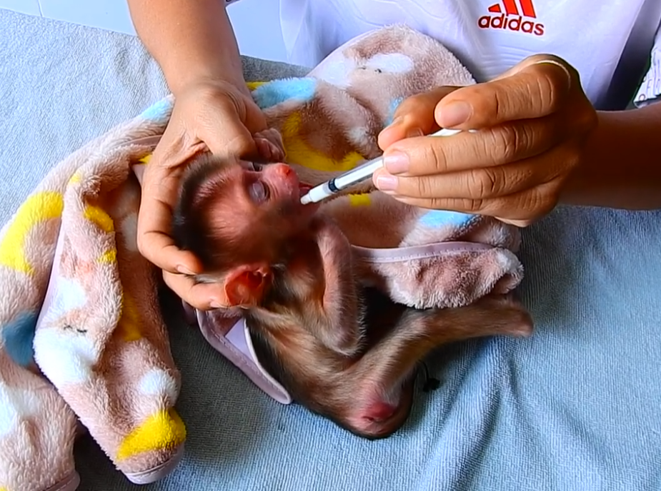 In the heart of the dense jungle, a tiny newborn monkey faced a major challenge. Just like many other creatures, the first few days of life are a critical period for survival. For this baby monkey, the moment had arrived to take its first steps, but unfortunately, it struggled to walk. Its tiny legs were weak, its movements clumsy, and the soft, underdeveloped muscles couldn’t support the weight of its body.