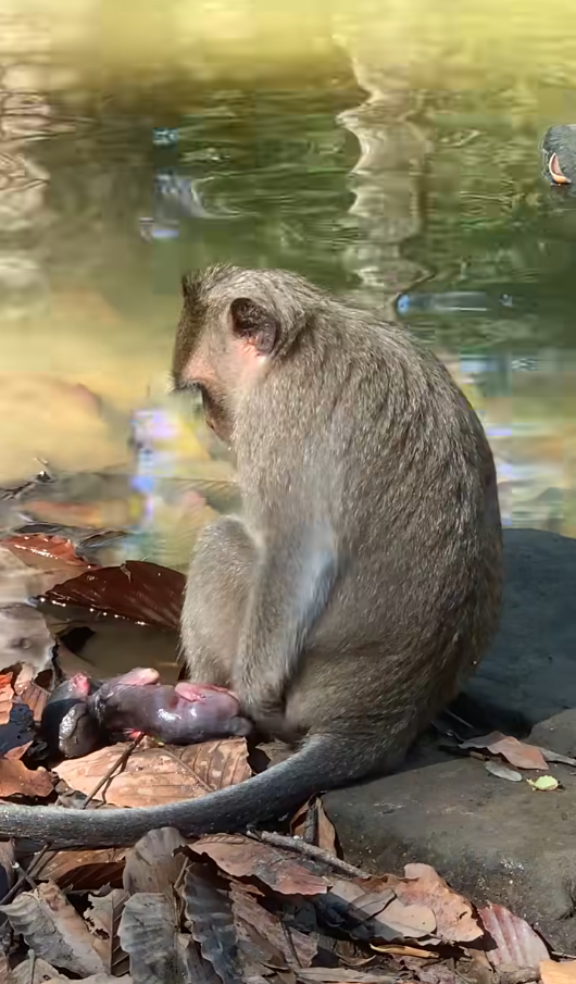 Below, the baby monkey lay curled in the grass, eyes still closed, fingers grasping at nothing. Warmth from the earth and the echo of the mother’s scent were all that kept the little one calm. The jungle, harsh and beautiful, watched without judgment. A butterfly landed nearby. Ants marched past. Life continued.