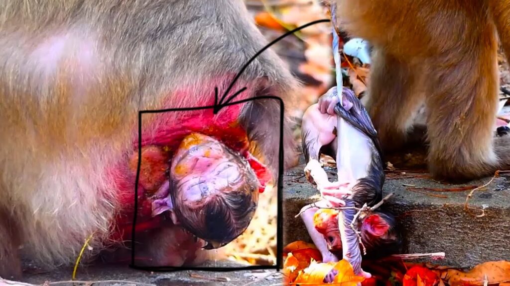 In a heart-wrenching moment of life and loss, an elderly monkey, seemingly worn by time, welcomed a newborn into the world. The birth of a baby monkey is always a moment of celebration, a tiny life bringing hope and new beginnings. But this story takes a tragic turn as the mother, unable to care for her newborn, abandoned her baby soon after the delivery.