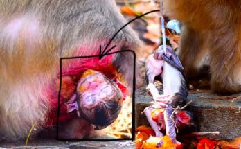 OOOH, M.G… Welcome to Newborn Baby Monkey! B.H-eart-B-reaking Old Mom Gives Birth Then A-bandoned Read More